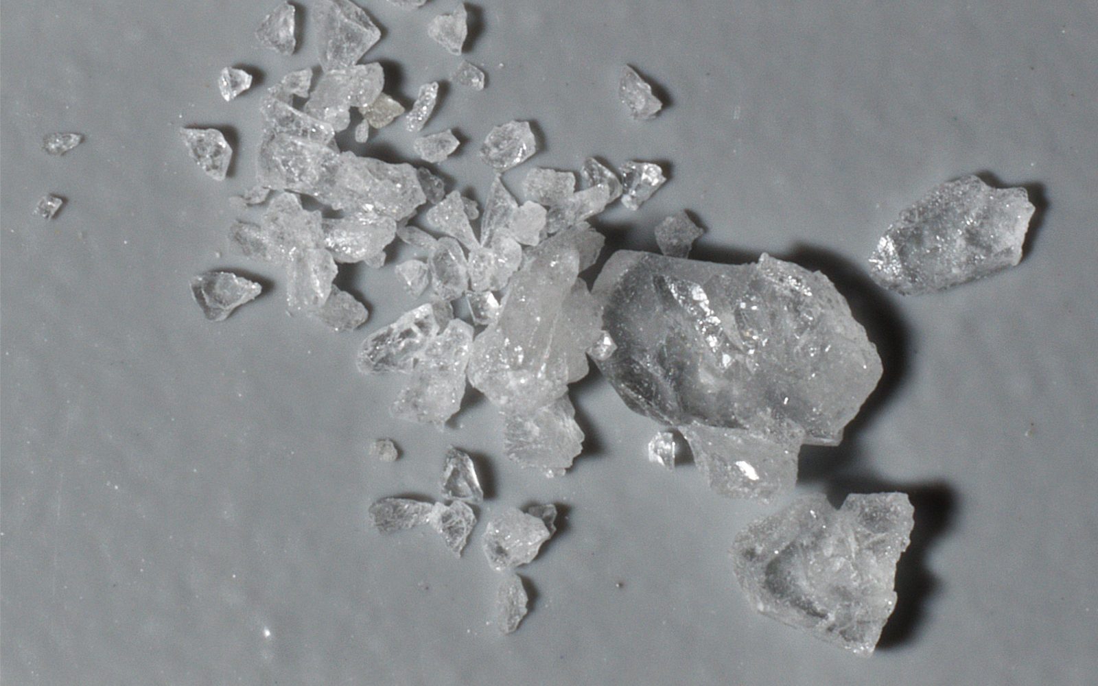 These crystals resemble substances like ketamine crystals or salt-like shards.